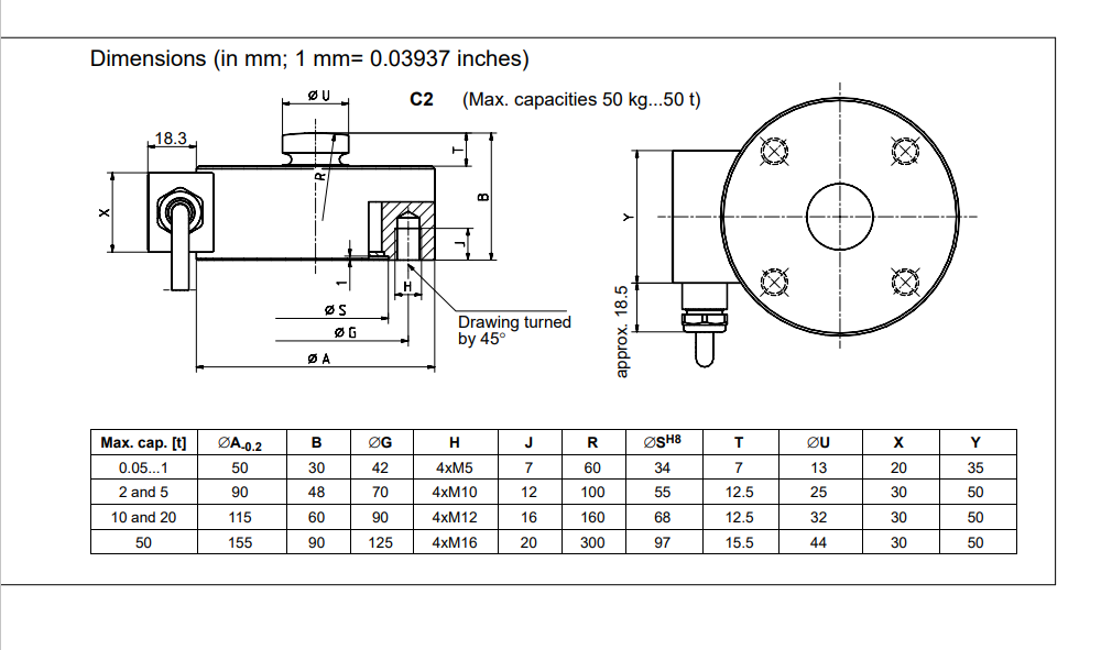 德國HBM稱重傳感器C2/20T產(chǎn)品尺寸圖:oJm廣州南創(chuàng)電子科技有限公司