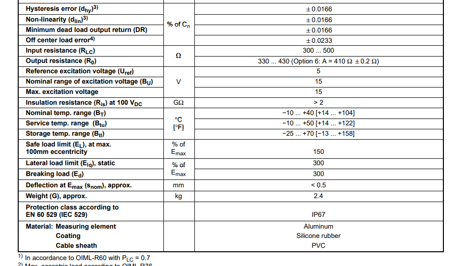 安全過載:在不會對HBMPW12CC3 635kg稱重傳感器參數(shù)產(chǎn)生永久性偏移下所允許施加的最大負載。一般以額定量程的比例形式表示(如150% of F.S.)FLZ廣州南創(chuàng)電子科技有限公司