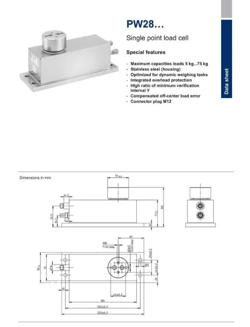 最小檢定分度值高達 20000,PW28 單點稱重傳感器完全滿足 C3 精度等級要求,可為您提供非常精確的測量結(jié)果。不銹鋼外殼固有的高剛度,使其非常適用于靜態(tài)和動態(tài)應(yīng)用。IP67 防護等級可用于惡劣的工業(yè)環(huán)境。所有PW28稱重傳感器,無論其量程大小,均內(nèi)置過載保護,可防止意外過載。2S2廣州南創(chuàng)電子科技有限公司
