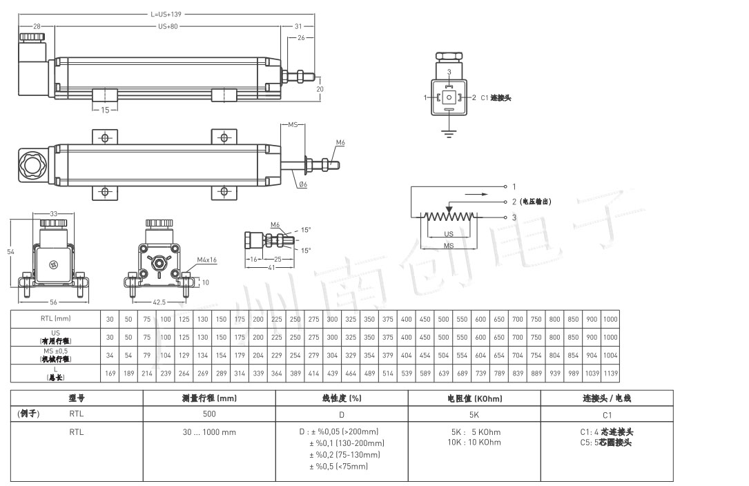 電阻式線性位移傳感器帶內(nèi)置轉(zhuǎn)換模塊系列:ELPT、ELPH、ELPC、ELPM65w廣州南創(chuàng)電子科技有限公司