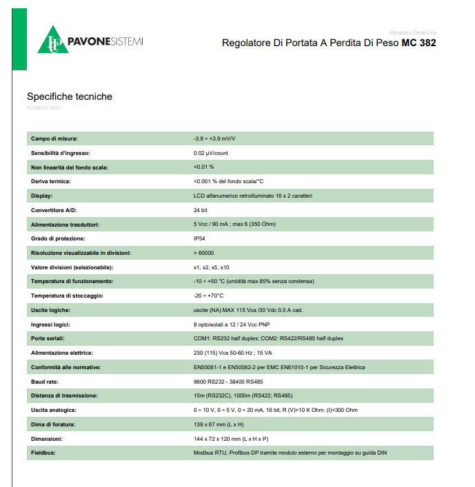 Pavone Sistemi稱重儀表相關(guān)型號(hào):