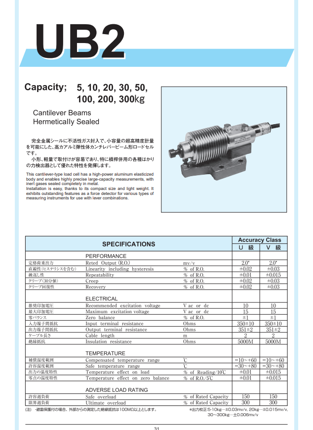 Yamato大和稱重傳感器UB2-5kg/10kg/20kg/30kg/50kg/100kg/200kg/300kg