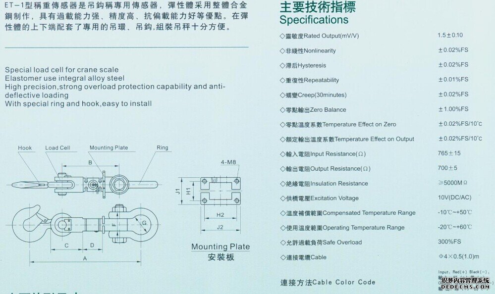 ET-1-1T稱重傳感器技術參數(shù):xVj廣州南創(chuàng)電子科技有限公司
