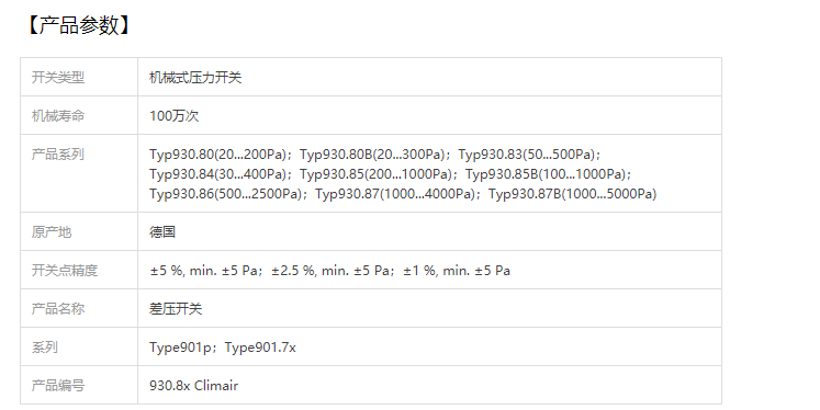beck壓力開關(guān) Type901壓力開關(guān),壓力范圍廣,壓力范圍可從5mbar到12bar,絕對(duì)壓力設(shè)定從-5mabr到-900mbar;Type930.80,Type930.83等微差壓開關(guān)壓力范圍廣,從20pa-4000pa;Type984和985微差壓傳感器壓力范圍廣,從0-25pa到0-250kpa,0-10V和4-20mA輸出。930壓力開關(guān),beck差壓開關(guān),type930差壓開關(guān),beck壓力測(cè)試單元,Typ930.80差壓開關(guān),Typ930.83風(fēng)壓開關(guān),Typ930.8x Pascal 壓差開關(guān),Typ930.8x Climair。jMt廣州南創(chuàng)電子科技有限公司