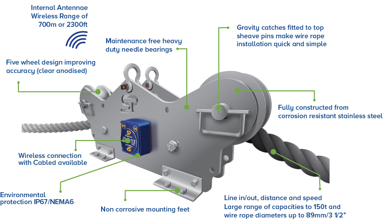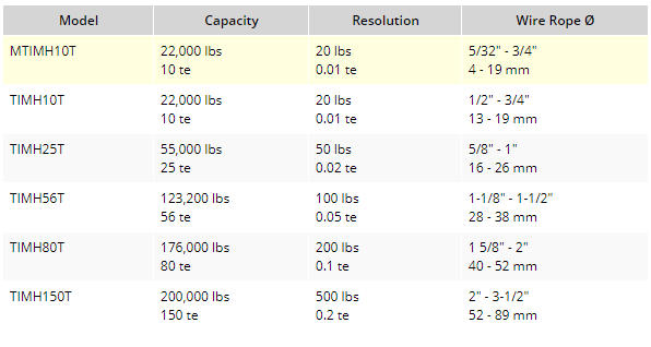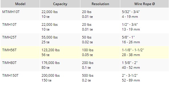 容量范圍從10t到150t,鋼絲繩直徑最大為52mm / 2”IKl廣州南創(chuàng)電子科技有限公司
