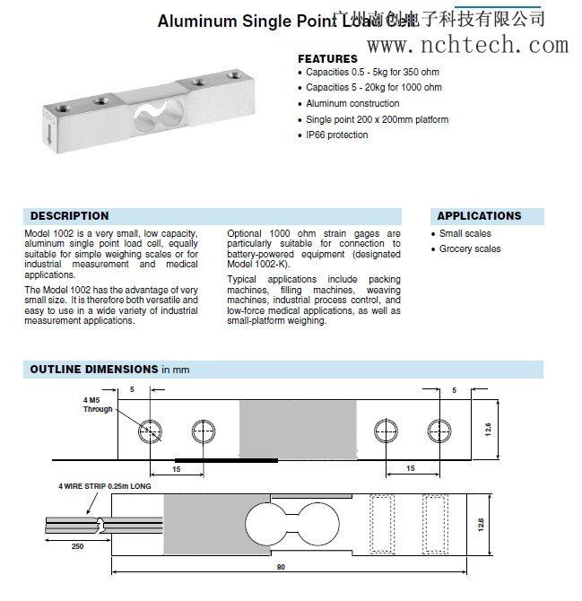 特性:量程0.5-5KG(350 ohm)Uev廣州南創(chuàng)電子科技有限公司