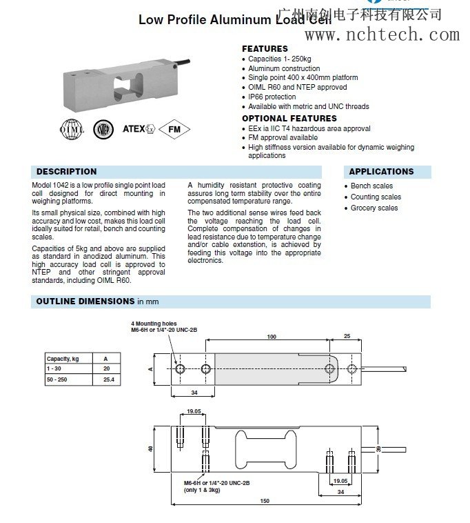 應(yīng)用:Tedea 1042單點(diǎn)式稱重傳感器應(yīng)用在平臺(tái)秤,工作臺(tái)秤,計(jì)數(shù)秤,食品秤。Gqp廣州南創(chuàng)電子科技有限公司