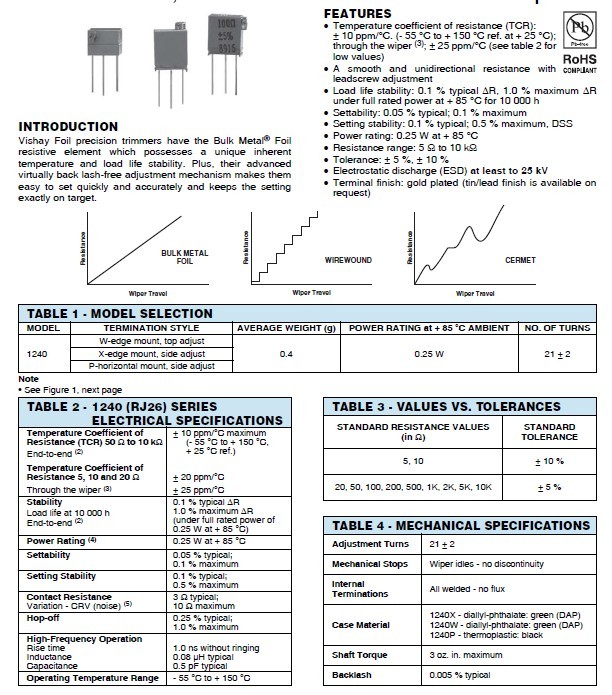 Vishay Foil precision trimmers have the Bulk Metal® Foil resistive element which possesses a unique inherent temperature and load life stability. Plus, their advanced virtually back lash-free adjustment mechanism makes them easy to set quickly and accurately and keeps the setting exactly on target.Qkx廣州南創(chuàng)電子科技有限公司