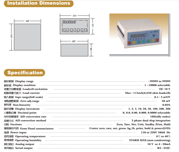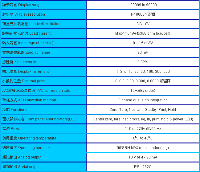 產(chǎn)品描述:臺灣JIHSENSE JS-2000_JS-2000顯示器系高功能高精度顯示器,本顯示器針對應變規(guī)式感測器所設計,有絕佳的穩(wěn)定性,類比信號可提供+/- 10V或4-20mA輸出,A-D採用最精確的雙斜率積分方式,每秒鐘取樣10次,本顯示器所有設定工作均由前面版的按鍵輸入,特別設計的總重修正功能,可讓使用者精確調(diào)整重量,使校正工作快速精確。