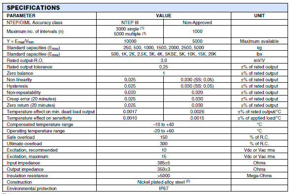 美國世銓Celtron SQB稱重傳感器系列所有量程如下: