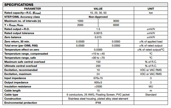 美國特迪亞tedea 121稱重傳感器系列所有量程如下:L9N廣州南創(chuàng)電子科技有限公司