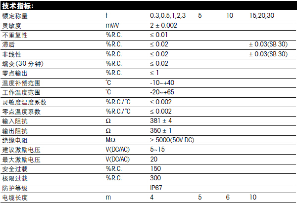 梅特勒托利多SB系列稱(chēng)重傳感器所有量程如下:e0g廣州南創(chuàng)電子科技有限公司