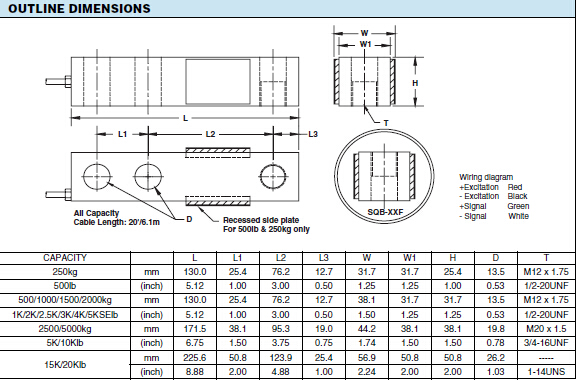 美國(guó)世銓Celtron SQB系列稱(chēng)重傳感器所有量程如下: yAM廣州南創(chuàng)電子科技有限公司