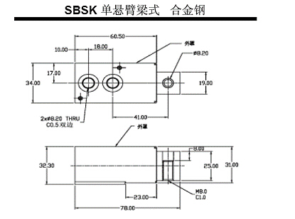 美國Transcell稱重傳感器SBSK-50kg產品尺寸:nlN廣州南創(chuàng)電子科技有限公司