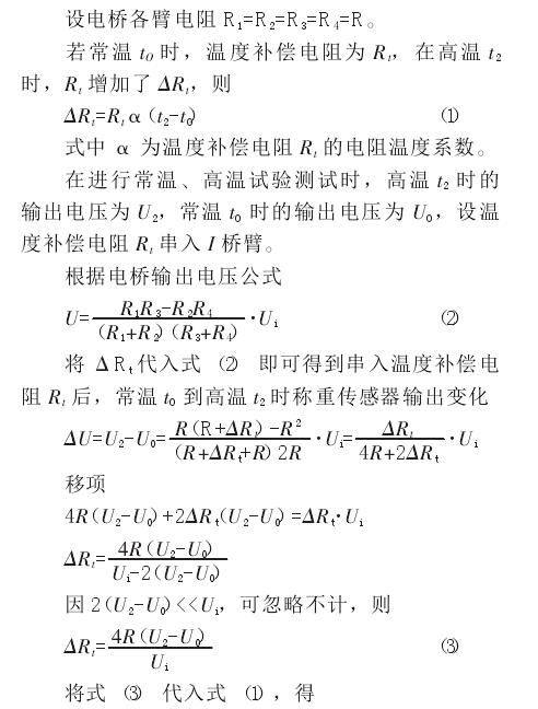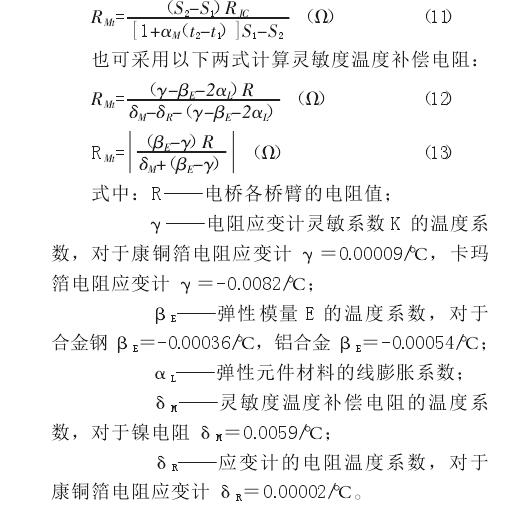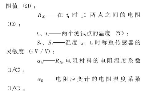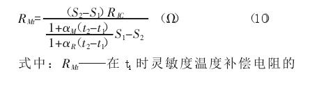 進(jìn)行靈敏度溫度補償時,首先分別測量出溫度 t1和 t2時稱重傳感器的靈敏度 S1和 S2,然后應(yīng)用下列公式計算補償電阻 RMt