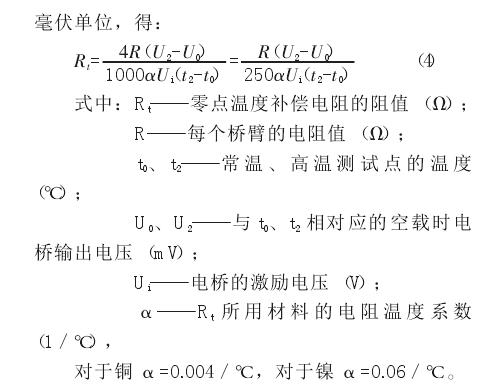 在實際應(yīng)用中,利用上述計算公式得到的零點溫度補償電阻值,對于準(zhǔn)確度等級不高的稱重傳感器基本能滿足補償要求。對于高準(zhǔn)確度稱重傳感器并不一定十分合適,需要經(jīng)過反復(fù)升降溫測試調(diào)整,才能獲得理想的零點溫度補償結(jié)果。