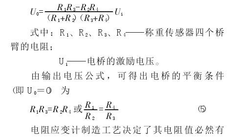 稱重傳感器多采用全橋式等臂電橋,其輸出電壓公式為