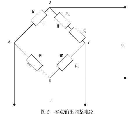 一定的分散度,使粘貼在同一個彈性元件上的電阻應(yīng)變計的電阻值完全相同是不可能的,而且在粘貼、加壓和固化工藝過程中電阻值還會發(fā)生變化。這就造成了組成電橋四個橋臂的電阻應(yīng)變計的電阻值不同,甚至相差較大,導(dǎo)致稱重傳感器在無外載荷作用時產(chǎn)生較大的零點輸出。