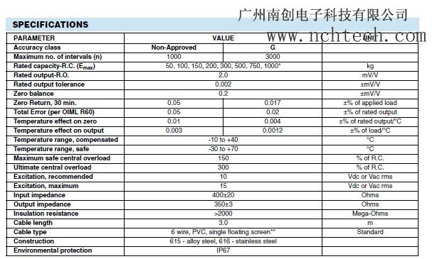美國(guó)特迪亞tedea 615-750kg S型稱重傳感器各項(xiàng)技術(shù)指標(biāo):          f9c廣州南創(chuàng)電子科技有限公司