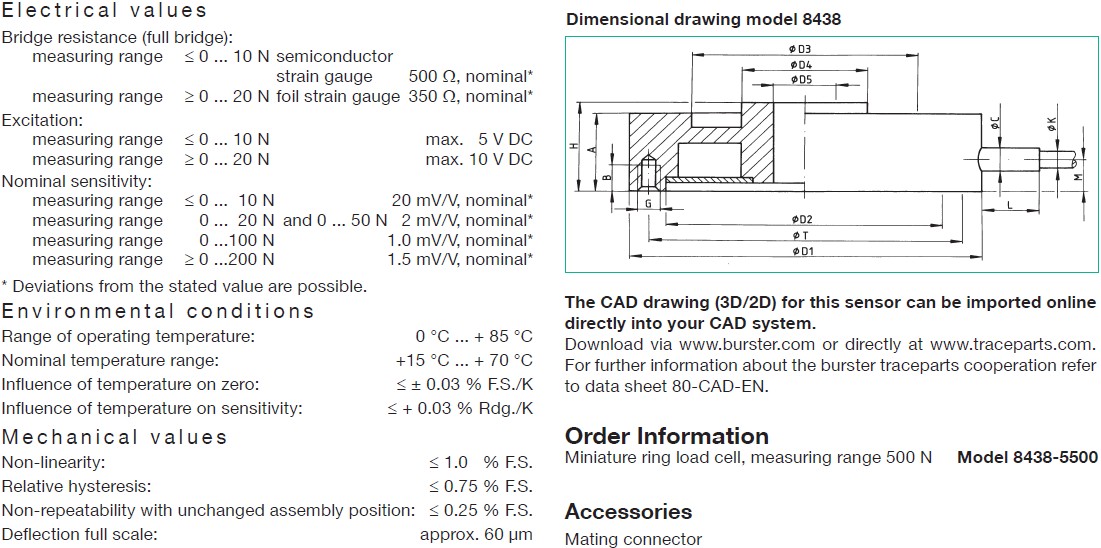 8438-5200稱重傳感器_德國Burster 8438-5200:0-200N傳感器