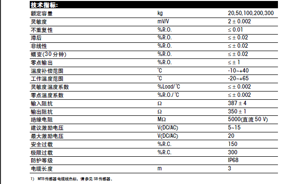梅特勒托利多MTB-20 稱重傳感器技術(shù)指標:eUp廣州南創(chuàng)電子科技有限公司