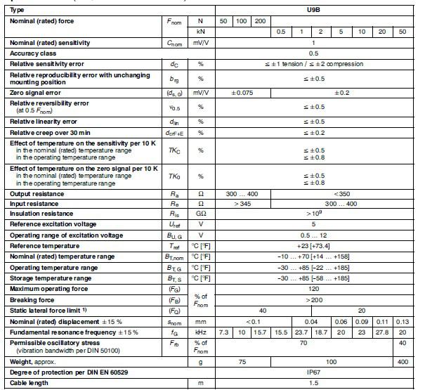 德國HBM 稱重傳感器U9B/20KN技術指標:3Vi廣州南創(chuàng)電子科技有限公司