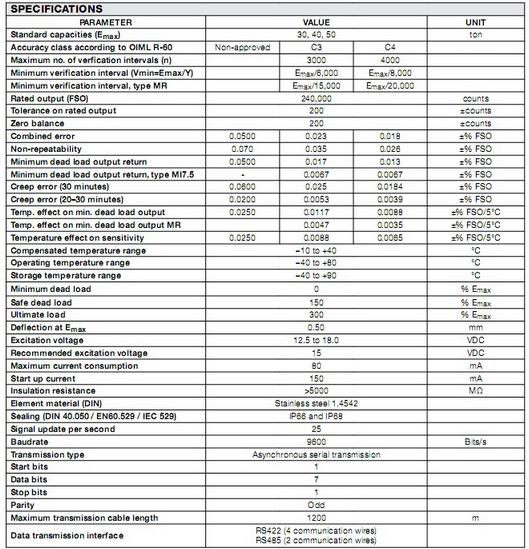 34499:  5103-B10-50k-30P1 50,000lb 30ft 3mV/V 700 OHM WW NTEP IIIL 10m FM IP67 p8U廣州南創(chuàng)電子科技有限公司