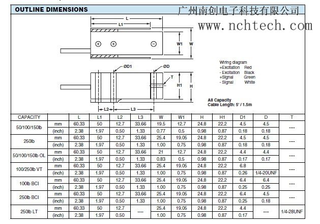 額定載荷Standard capacities (Emax) 50,100,150,250 lbsrRo廣州南創(chuàng)電子科技有限公司