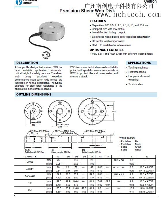 美國Celtron PSD-500kg稱重傳感器系列相關(guān)型號詳細資料:9NU廣州南創(chuàng)電子科技有限公司