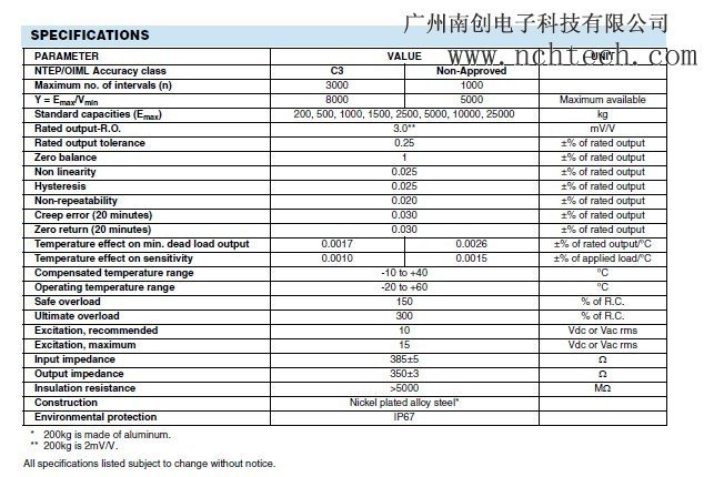 零點溫漂 0.026 破壞載荷 300%.9NU廣州南創(chuàng)電子科技有限公司