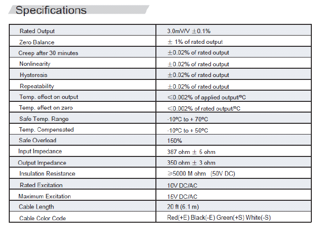 SBSB-1000kg傳感器的技術參數(shù):x1c廣州南創(chuàng)電子科技有限公司