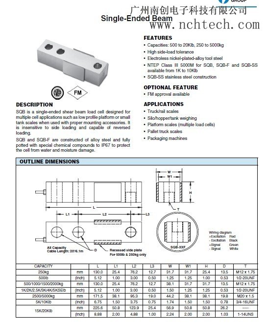SQB、SQB-F、SQB-SS量程1K到10KLB,獲得NTEP Class III 5000M認(rèn)證wnH廣州南創(chuàng)電子科技有限公司