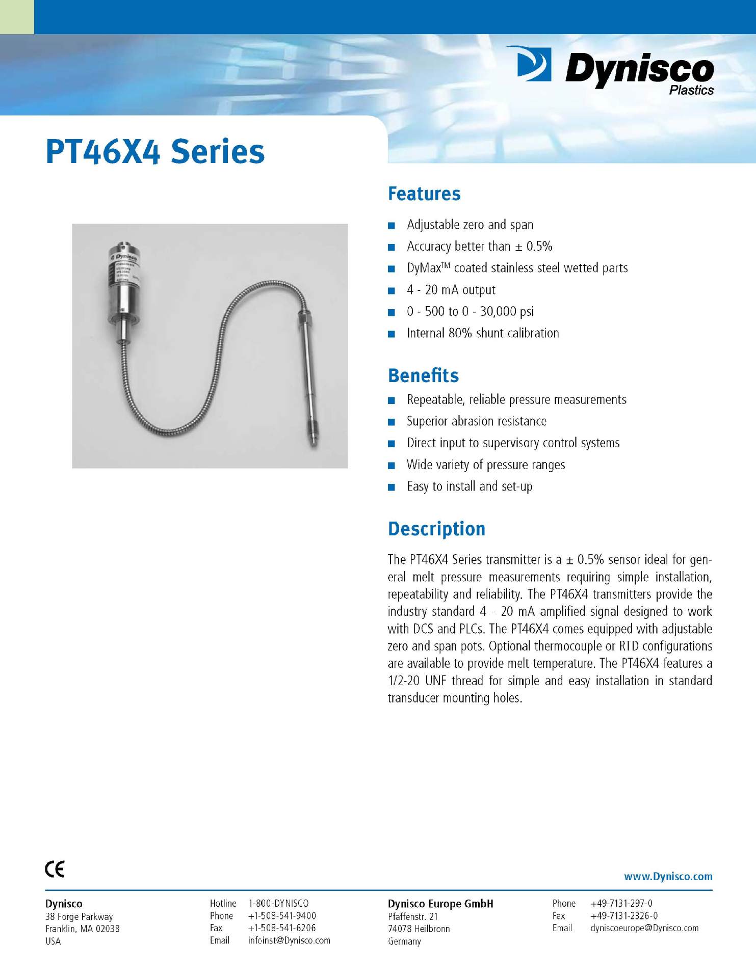 PT4626-35MPA-6/18美國(guó)Dynisco丹尼斯科溫熔體壓力傳感器 變送器