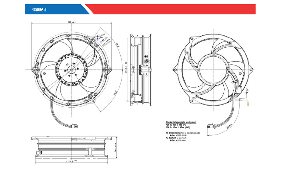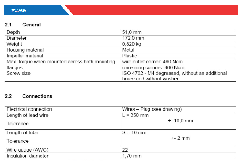 ebmpapst風扇W2E143-AA09-01兩根電源線代表電容器那部分已經(jīng)接在機體內部,僅需將兩根電源線分別與來自空開的火線及電容線連接。