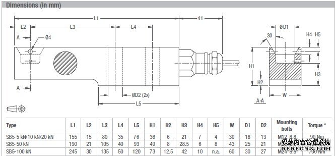 對(duì)于SB5-50 kN/100千牛4.5米ePU廣州南創(chuàng)電子科技有限公司