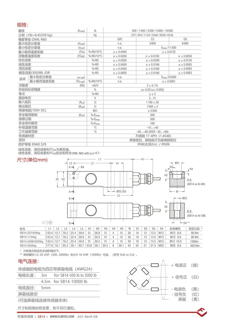 德國Flintec稱重傳感器SB14-454kg產(chǎn)品技術(shù)參數(shù):kZV廣州南創(chuàng)電子科技有限公司