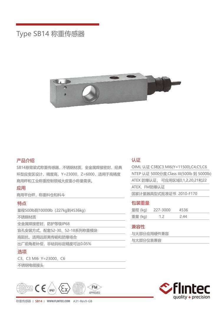 產(chǎn)品英文名稱:德國Flintec稱重傳感器SB14-1134kgkZV廣州南創(chuàng)電子科技有限公司