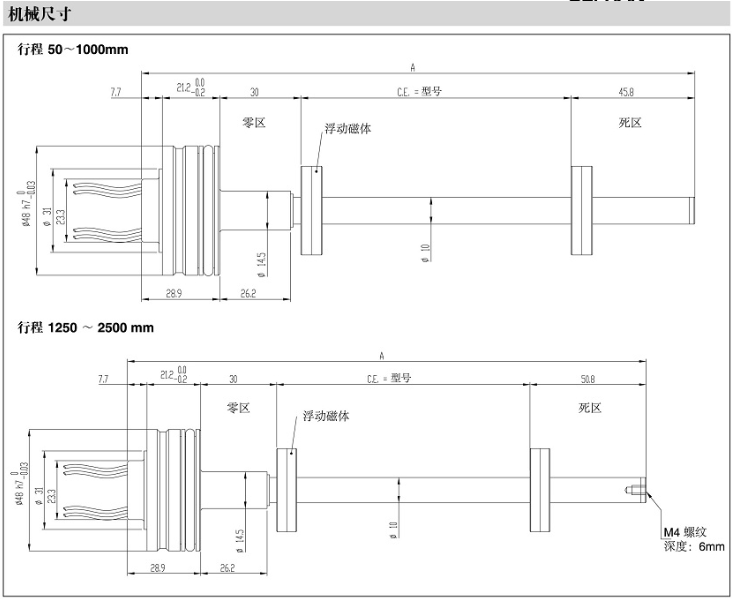 杰佛倫非接觸式磁致伸縮位移傳感器的尺寸圖:VG7廣州南創(chuàng)電子科技有限公司