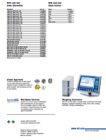 瑞士梅特勒托利多MTB-200稱重傳感器各項(xiàng)技術(shù)參數(shù):EWs廣州南創(chuàng)電子科技有限公司