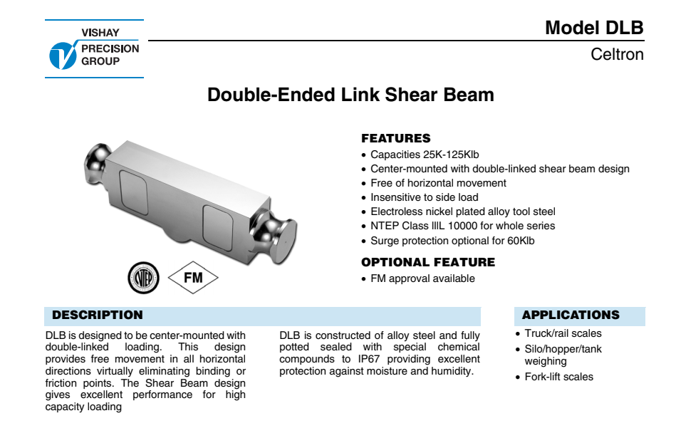 威世世銓傳感器Celtron DLB系列雙剪切梁稱重傳感器tfs廣州南創(chuàng)電子科技有限公司