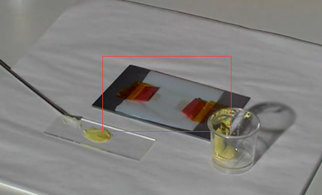 然后在用樹(shù)脂保護(hù)膜將其覆蓋,以防此粘結(jié)包裝材料。(其他材料也可以使用比如粗糙的吸水紙)