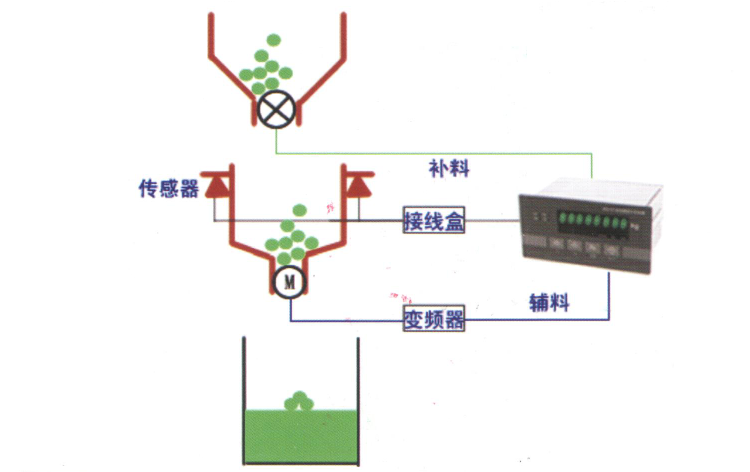 適合流動性不好的物料,按實際排料量計量;秤斗不能太大,否則精度可能 不高;可在原有的儲料斗上直接改造;秤斗內(nèi)先裝滿物料,配料時,控制器控制 卸料閥門打開,每次排出設(shè)定重量的物料;當(dāng)檢測到料斗內(nèi)剩佘物料達到下限 時,啟動輸送機結(jié)構(gòu)向料斗內(nèi)裝料,直接到上限值時停止。