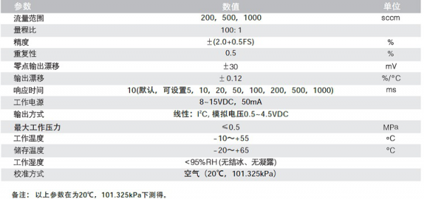 FS5001B系列氣體流量傳感器技術(shù)參數(shù)