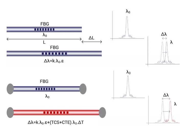 • 使用另外僅測量溫度引起應(yīng)變的光纖應(yīng)變片,用于相同的材料且相同的溫度條件下,對(duì)溫度引起的應(yīng)變進(jìn)行補(bǔ)償
