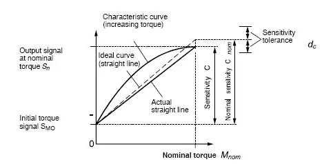 靈敏度C被表示為特性曲線的斜率。特性曲線為連接未加載的扭矩傳感器的輸出信號SM0和額定扭矩輸出信號Sn之間的直線。簡單表達式為y29廣州南創(chuàng)電子科技有限公司
