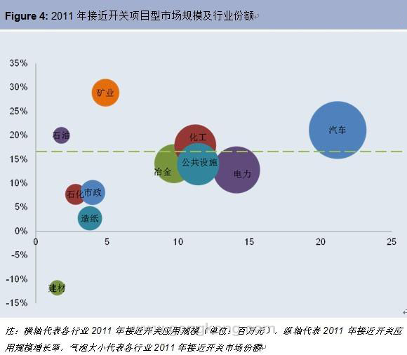2011年,項(xiàng)目市場(chǎng)接近開(kāi)關(guān)銷(xiāo)售額為1.22億元,同比增長(zhǎng)16.2%,高于2010年的14.8%。汽車(chē)、電力和冶金三大行業(yè)的銷(xiāo)售額分別為2120萬(wàn)元、1410萬(wàn)元和970萬(wàn)元,分別占比17.4%、11.6%和8.0%。nr2廣州南創(chuàng)電子科技有限公司