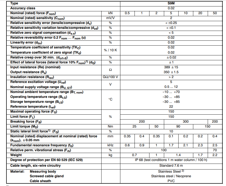 德國HBM力傳感器S9M/50KN產品技術參數:1cN廣州南創(chuàng)電子科技有限公司