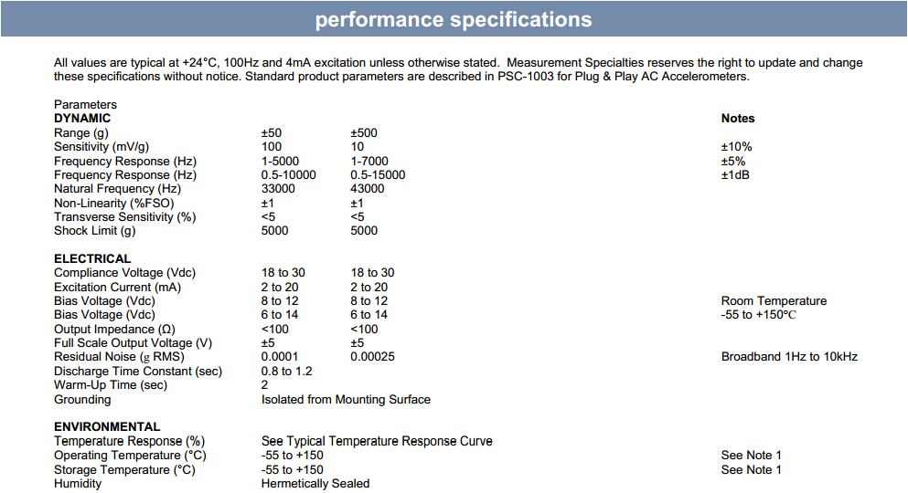 美國MEAS 7100A系列加速度計(jì)性能規(guī)格圖:Dkp廣州南創(chuàng)電子科技有限公司