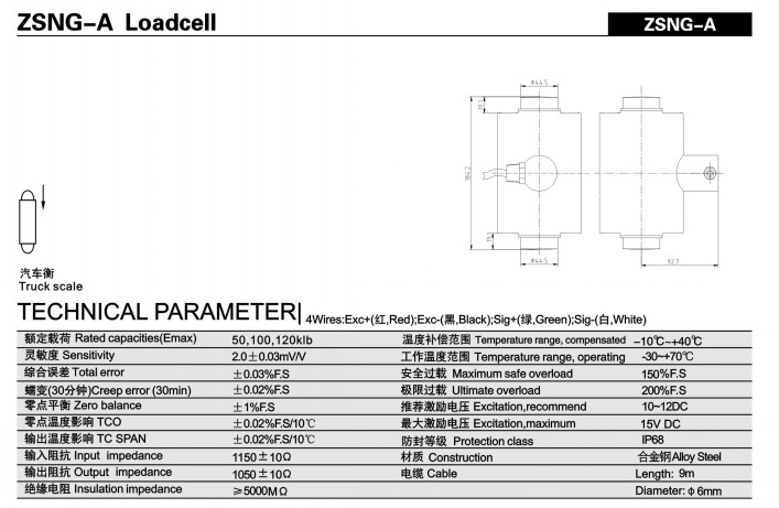 產(chǎn)品系列:ZSNG-A型稱重傳感器ZUS廣州南創(chuàng)電子科技有限公司