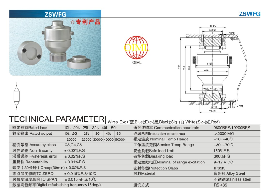 寧波柯力稱重傳感器ZSWFG-10t產(chǎn)品技術(shù)參數(shù)及尺寸圖:s3m廣州南創(chuàng)電子科技有限公司